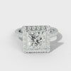 The Sadie Engagement Ring features a stunning princess-cut center stone surrounded by a pave set halo, enhancing brilliance and sparkle. Accented with strategically placed stones along the band, this ring offers exceptional clarity and a refined silhouette. Designed for enduring elegance, it perfectly balances contemporary style with classic sophistication, making it an expert choice for a memorable engagement.