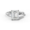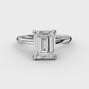 The Siya Emerald Cut Engagement Ring showcases the sophisticated geometry of an emerald-cut diamond, celebrated for its clean lines and commanding presence. Set in a four-prong setting that emphasizes the stone's rectangular facets, this design offers both security and an unobstructed view of your diamond's clarity and color. The hidden halo—nestled beneath the center stone—amplifies brilliance while maintaining the ring's refined, minimalist aesthetic.