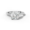The Stella Engagement Ring features a stunning cushion-cut center stone that captures light beautifully for exceptional brilliance. Its hidden halo design adds a subtle yet luxurious glow, enhancing the ring’s elegant profile without overwhelming the main gem. Accented by delicately placed stones along the band, this ring offers a refined sparkle, combining classic sophistication with contemporary detail to create a timeless symbol of commitment.