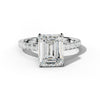 The Stella Emerald Cut Engagement Ring features a striking emerald-cut center stone, enhanced by a hidden halo of pave-set diamonds that adds subtle brilliance without overwhelming the design. Carefully placed accent stones along the band provide refined sparkle and depth, creating a sophisticated and timeless piece that combines classic elegance with modern craftsmanship. Perfect for those seeking an understated yet impactful statement ring.