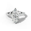 The Stella Engagement Ring showcases expert design with its elongated marquise center stone, offering a unique blend of elegance and sophistication. A hidden halo surrounds the main diamond discreetly, enhancing its sparkle while maintaining a refined profile. Accent stones along the band add dimension and brilliance, highlighting the ring’s meticulous craftsmanship. This piece is perfect for those who appreciate classic shapes elevated by subtle, luxurious details.