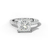 The Stella Engagement Ring expertly showcases a refined princess-cut center stone, enhanced by a discreet hidden halo that subtly amplifies its brilliance. Accent stones along the band add delicate shimmer without detracting from the ring's clean, geometric elegance. This design skillfully balances modern sophistication with timeless appeal, making it an exceptional choice for a distinctive and enduring symbol of love.