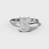 The Tessa Elongated Cushion Diamond Engagement Ring exemplifies refined craftsmanship with its solitaire design and four-prong setting. The elongated cushion cut delivers exceptional light performance, creating a distinctive visual presence that stands apart from traditional round stones.