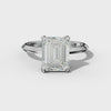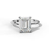 The Tessa Emerald Cut Engagement Ring delivers classic sophistication through its iconic emerald-cut diamond mounted in a four-prong solitaire setting. The emerald cut's rectangular silhouette and layered facet structure create a distinctive visual signature, showcasing the stone's transparency and depth.