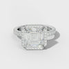 This Violet Asscher Cut engagement ring showcases a meticulously cut center stone, highlighting the iconic step facets and geometric precision of the Asscher cut. Encircled by a pave set halo and complemented by additional accent stones, it maximizes light reflection for exceptional brilliance. Designed with expert craftsmanship, this ring offers a sophisticated and timeless aesthetic, ideal for celebrating enduring love with a modern touch.