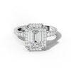 Discover timeless elegance with the Violet Emerald Cut Engagement Ring, expertly crafted to showcase a stunning emerald-cut center stone. This ring features a pave set halo and accent stones that enhance its brilliance and add a refined sparkle. Perfect for those seeking a sophisticated and classic design, it combines modern precision with enduring style to celebrate your most meaningful moments.