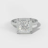 The Violet Engagement Ring features a precisely cut princess diamond at its center, framed by a pave-set halo that amplifies its brilliance. Delicate pave-set accent stones along the band add refined sparkle, enhancing the ring’s sophisticated design. This expert craftsmanship ensures a timeless piece that beautifully captures light and symbolizes lasting commitment.