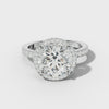 This Violet Round Diamond Engagement Ring features an expertly crafted pave-set halo that enhances the central diamond’s brilliance. Accentuated by side stones and additional pavé-set stones beneath the setting, the ring offers a balanced sparkle from every angle. Designed for enduring elegance, its meticulous detailing highlights the diamond’s fire and clarity, making it a refined choice for a timeless symbol of commitment.